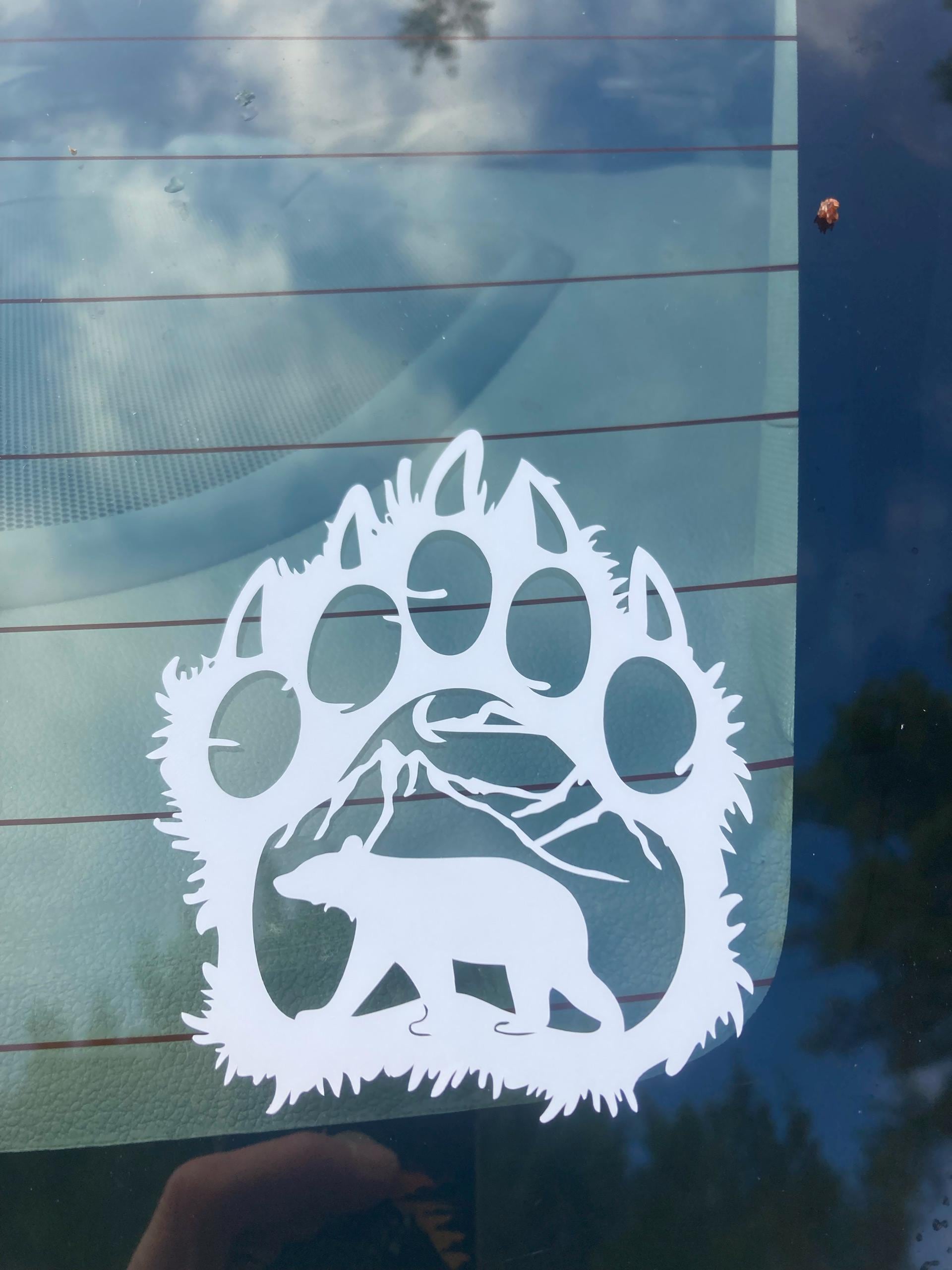 Bear in paw design vinyl decal sticker. Multiple size and color choices available.
