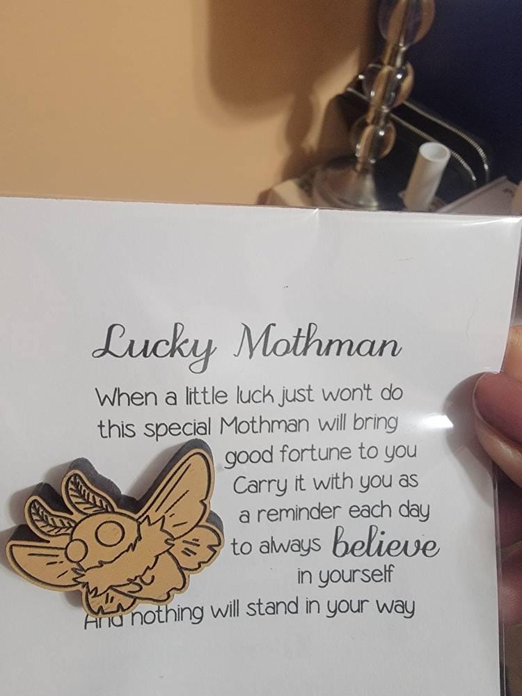 Give this cute Mothman pocket pal to that special person to remind them to always believe in themselves. The Mothman token is removable from the cardstock poem so it can easily fit in a pocket.